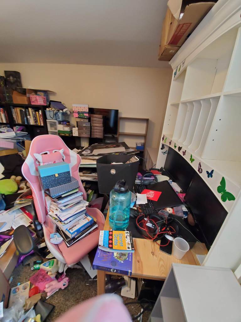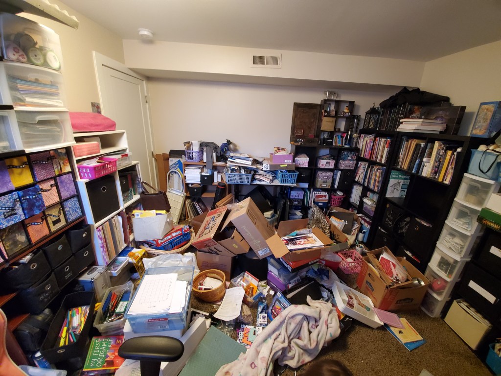 It was interesting seeing the responses on the facebook post- I don’t normally post in groups- actually go out of my way to avoid posting. But for whatever reason I posted 3 pictures of my disaster of an office that day with the caption: